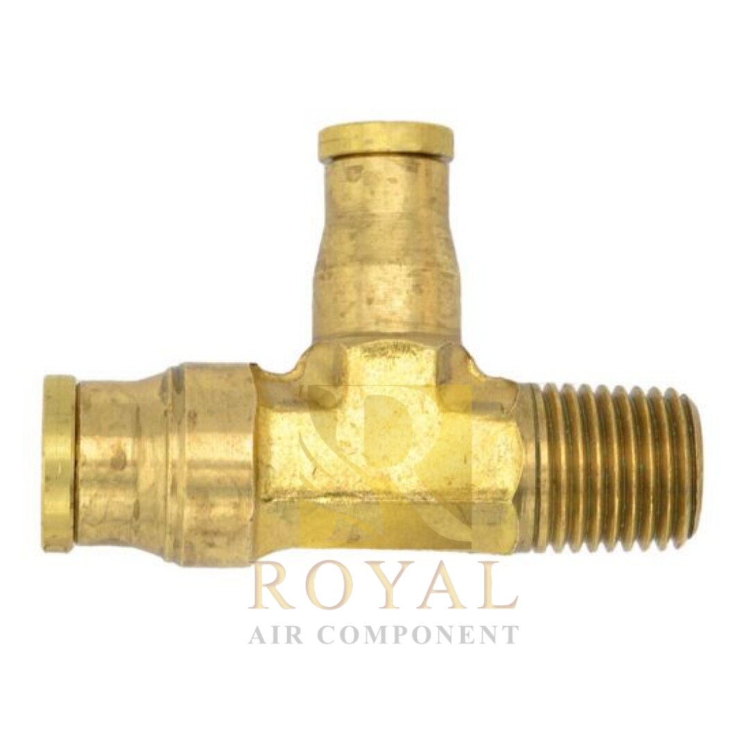 Brass Tee for Screw Air Compressor Manufacturers in Ahmedabad Brass Tee for Ingersoll Rand (Original) We are also supply in Andhra Pradesh, Arunachal Pradesh, Assam, Bihar, Chhattisgarh, Goa, Gujarat, Haryana, Himachal Pradesh, Jharkhand, Karnataka, Kerala, Madhya Pradesh, Maharashtra, Manipur, Meghalaya, Mizoram, Nagaland, Odisha, Punjab, Rajasthan, Sikkim, Tamil Nadu, Telangana, Tripura, Uttar Pradesh, Uttarakhand, and West Bengal Material Composition: Material: High-quality forged brass (CW617N, C36000, or equivalent) Finish: Natural brass or nickel-plated for corrosion resistance Durability: High-pressure resistance, leak-proof, and rust-free 2. Connection & Thread Specifications: Thread Type: BSP (British Standard Pipe), NPT (National Pipe Thread), or Metric Thread Size: 1/4", 3/8", 1/2", 3/4", 1", 1.5", 2" (varies based on application) Connection Type: Female-Female-Female (FFF) / Male-Male-Female (MMF) / Compression 3. Pressure & Temperature Ratings: Working Pressure: Typically 10 bar to 40 bar (150 PSI to 600 PSI) Burst Pressure: Up to 100 bar (varies by model) Operating Temperature: -20°C to +120°C 4. Design & Features: Tee Type: Equal Tee or Reducing Tee Sealing Type: Teflon tape or O-ring for a leak-proof connection Application: Suitable for compressed air, pneumatic systems, and gas lines 5. Compliance & Standards: Standards: ISO 4144, ANSI B16.15, DIN, or JIS Certifications: CE, ROHS, UL-approved options available