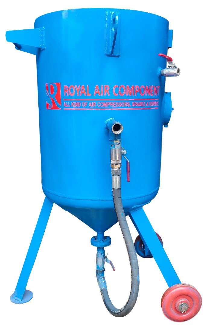 About the Product Royal Air Component, a leading Sand Blasting Machine Manufacturer & Supplier in Ahmedabad, India, offers premium-quality surface preparation systems designed for long life, efficiency, and precision. Our Sand Blasting Machines are engineered to remove rust, paint, corrosion, and contaminants from metal and concrete surfaces — ensuring perfect adhesion for painting, coating, or finishing. These machines are built for heavy-duty industrial use, combining robust design, superior performance, and minimal maintenance. Whether for manufacturing, fabrication, or repair work, Royal Air Component delivers the most reliable and cost-effective sand blasting solutions in the market. --- Key Features High Performance: Ensures uniform surface cleaning and finishing. Durable Design: Heavy-duty steel body suitable for long-term industrial use. Adjustable Blasting Pressure: Compatible with various abrasive materials and applications. Low Maintenance: Built for continuous operation with minimal downtime. Dust Collector Option: Available for clean and eco-friendly operations. User-Friendly Operation: Simple setup with high safety standards. --- Technical Specifications Parameter Details Type Pressure / Suction Blasting Machine Abrasive Capacity 50 kg – 1000 kg Working Pressure 60 – 120 PSI Construction Material Mild Steel / Stainless Steel Abrasive Media Garnet, Aluminum Oxide, Copper Slag, Glass Beads, Steel Grit, etc. Air Compressor Requirement 5 HP – 50 HP (depending on model) --- Applications Rust and corrosion removal Metal surface cleaning and texturing Paint and coating preparation Maintenance of industrial equipment Used in fabrication, automotive, shipbuilding, and construction industries --- Why Choose Royal Air Component Over a decade of experience in air compressor and surface treatment solutions Customized machine design as per client requirements Comprehensive after-sales support and spare parts availability Trusted by leading industries across India for reliability and performance